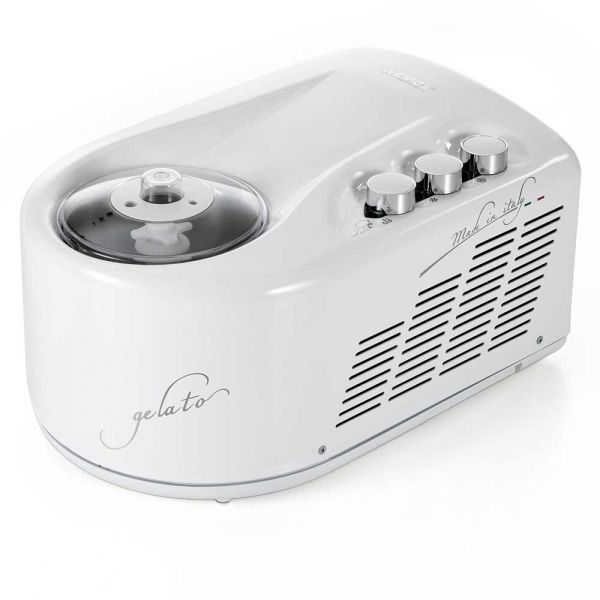 Фризер обладает обновлённым и современным дизайном. Корпус сделан из отлитого алюминия, прочный и крепкий. Благодаря своим размерам и практичности может использоваться в домашних условиях для тех, кто любит совершенство. Аппарат для приготовления мороженого снабжен мощной холодильной установкой. Производит мороженое на любой вкус, какой Вы только пожелаете, один за другим. Фризер имеет также мощный мотор, с более длительным ресурсом. Вместимость емкости до 1,7 л. Имеется также сменная емкость из алюминия и лопатка для мороженого. Холодильная установка соответствует нормам по окружающей среде и сохранению озонового слоя. Данная модель одна из немногих снабжена так называемой "функцией хранения" - когда мороженое готово, аппарат поддерживает нужную температуру в нем на необходимое вам время.